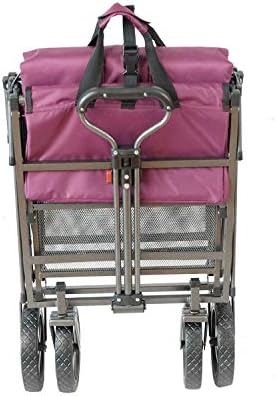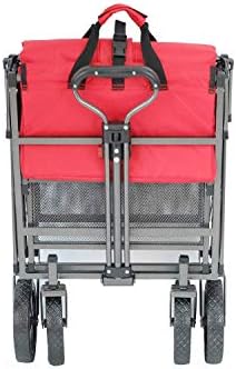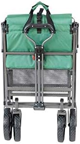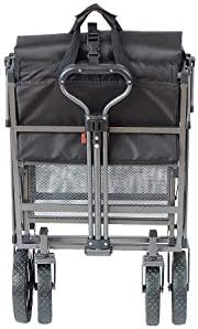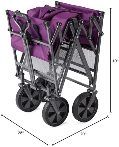 Weighing in at just 27 lbs, this wagon is easy to handle without compromising on strength. The heavy-duty rubber treads ensure traction on any surface, while the frame is constructed from sturdy powder-coated steel. Additionally, the high-quality 600D poly denier fabric is water-repellent, keeping your belongings safe and dry.